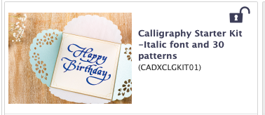 For this example I am using the calligraphy italic font patterns and have chosen the "Happy Birthday" wording. These are available to me because I own the kit and have activated the corresponding card.